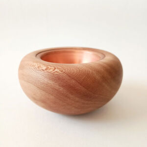 Japanse wierookhouder / wierookvat traditioneel houten model met roodkoper. De wierookhouders (in Japans: koro) zijn handgedraaid van kwaliteitshout met strakke koperen inleg. Deze wierookhouder heeft een klassiek Japans ontwerp zoals veel gebruikt op altaren in Japanse Zentempels. De maker, Tom van Dijk, woonde jarenlang in Japan en werkte daar aan diverse houtbewerkingsprojecten.